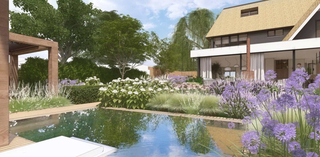 De ontwikkelingen op het gebied van 3D visualisaties gaan snel. Wij bieden dan ook zelf de mogelijkheid aan om uw project volledig in 3D te visualiseren. Hiermee komen al in een vroeg stadium alle mogelijkheden van uw droomtuin tot leven. Hieronder geven wij een overzicht van diverse door ons getekende (en nog uit te voeren) tuinontwerpen.