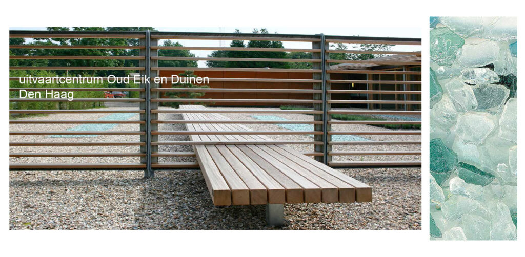 - bamboe, bedrijfstuin, glasgrind, schelpen