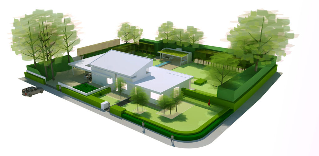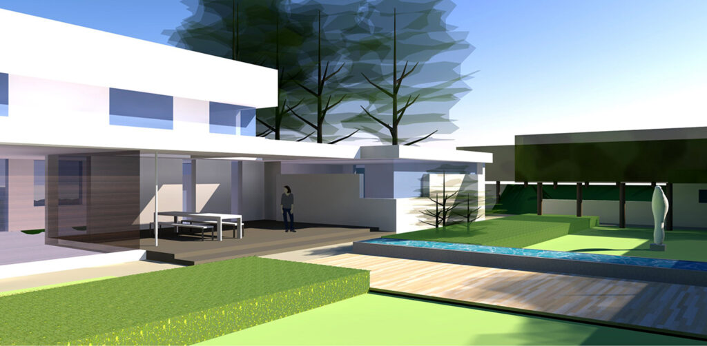 Geometrie in ontwikkeling Didam. In het hart van Didam verrijst een moderne villa op de plek van een voormalig ouderlijk huis. Het ontwerp van deze villa is zorgvuldig afgestemd om de strakke lijnen van de woning en de tuin in perfecte harmonie te brengen. Daarbij is een bewuste keuze gemaakt tussen privacy en openheid in de tuin.