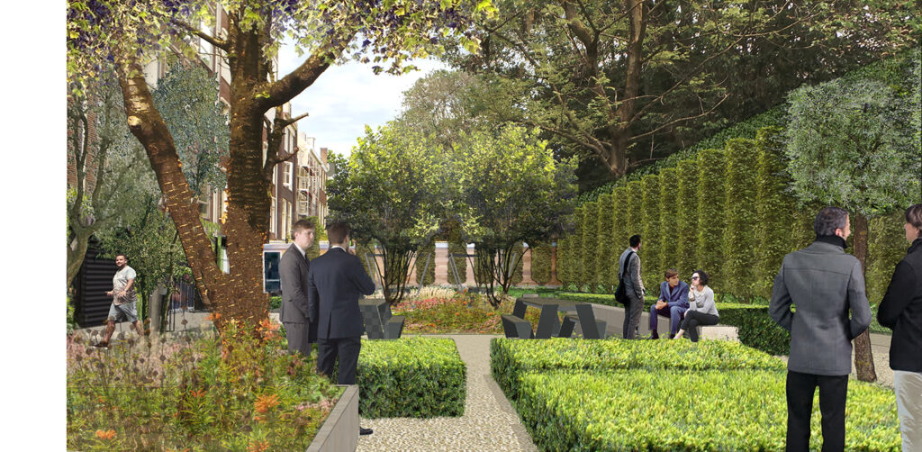 Deze symbiose van oud en nieuw maakt de grachtentuin in ontwikkeling Amsterdam tot een uniek en gewild kantoorproject.