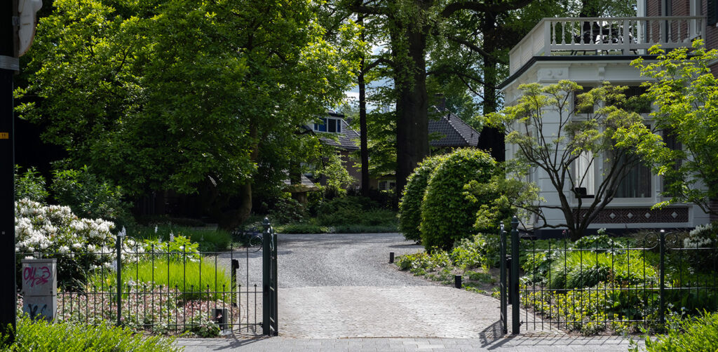Op de kavel stonden meerdere beeldbepalende, monumentale bomen. Deze bomen bepaalden voor een groot deel het ontwerp. Hun aanwezigheid gaf richting aan de indeling van de tuin. Daarom is gekozen voor een stijl die aansluit bij de Engelse landschapsstijl van de omgeving.
