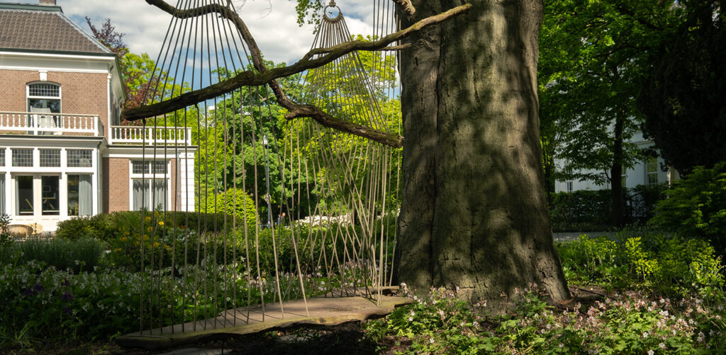 Een bijzonder element is de schommel van kunstenaar Chiel Kuijl. Deze is op natuurlijke wijze aan een monumentale beuk bevestigd. De schommel voegt niet alleen speelsheid toe, maar versterkt ook het parkachtige gevoel. Kunst en natuur gaan hier hand in hand.