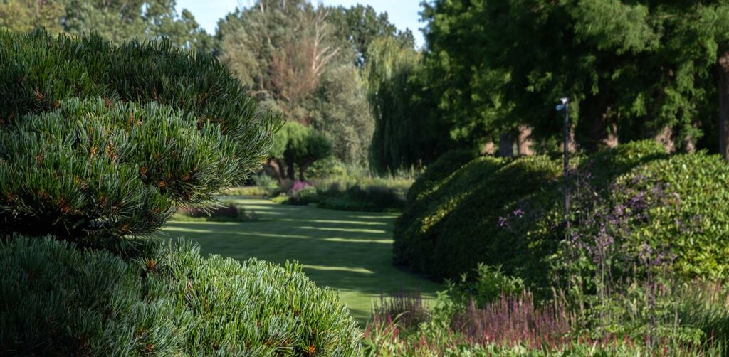 De borders zijn zo geplaatst dat je al wandelend de hele tuin kunt ontdekken. Overal zie je kleur, vorm en structuur. In het voorjaar zorgen bloeiende Prunus yedoensis (Japanse sierkers) voor een spectaculair lentebeeld.