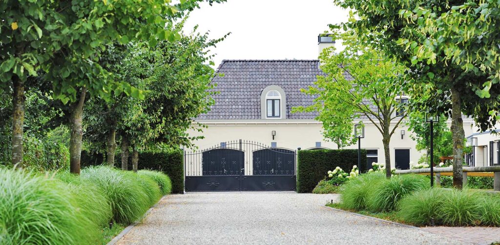 De realisatie van deze tuin en de bijbehorende landschapsinrichting is uitgevoerd door Hendriks Hoveniers uit Didam. Hun vakmanschap en oog voor detail hebben gezorgd voor een harmonieus geheel dat zowel esthetisch als functioneel perfect aansluit bij de architectuur van de woning en de omliggende natuur.