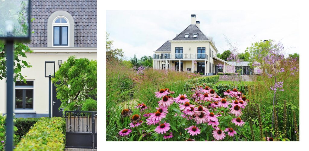De prairieborders zijn zorgvuldig samengesteld op basis van bloemkleur en hoogte. De beplanting bestaat uit een mix van siergrassen, sterke vaste planten en bloembollen. Door deze slimme combinatie bloeit de tuin vrijwel het hele jaar door, wat zorgt voor een continu kleur- en structuurrijk spektakel. Deze duurzame en onderhoudsarme beplantingsstructuur draagt bij aan een levendig landschap dat zich telkens vernieuwt.