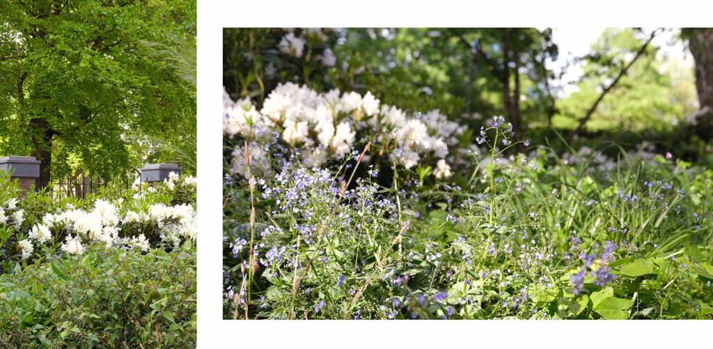 De strategische plaatsing van volwassen, karakteristieke solitaire heesters draagt bij aan de unieke uitstraling van de tuin. Deze meervoudig vertakte struiken versterken het natuurlijke karakter van de tuin en maken het geheel compleet.