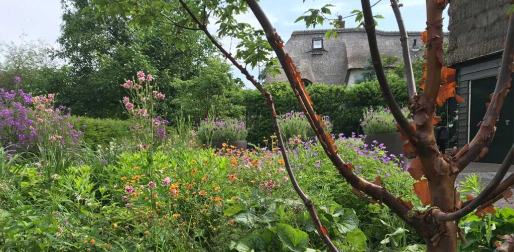 De traditionele boerderijtuin Blaricum heeft na de restauratie van deze authentieke boerderij geresulteerd in een prachtige buitenruimte. Met verhoogd terrassen, strategisch geplaatste hagen en duurzame materialen is een tuin gecreëerd die zowel functioneel als esthetisch aantrekkelijk is. Deze tuin biedt de perfecte plek om te ontspannen en te genieten van de landelijke omgeving van Blaricum.