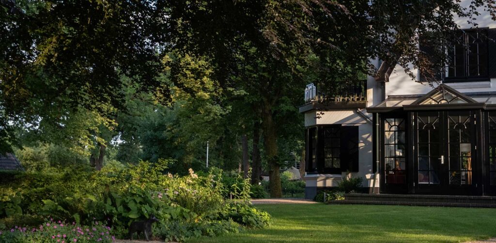 De aanwezige lindes speelden een belangrijke rol in de uitstraling van de kavel. Door deze bomen nadrukkelijk vrij te zetten, kwam hun beeldbepalende kracht opnieuw naar voren. Dit gaf de tuin direct meer diepte en een natuurlijke ordening.
